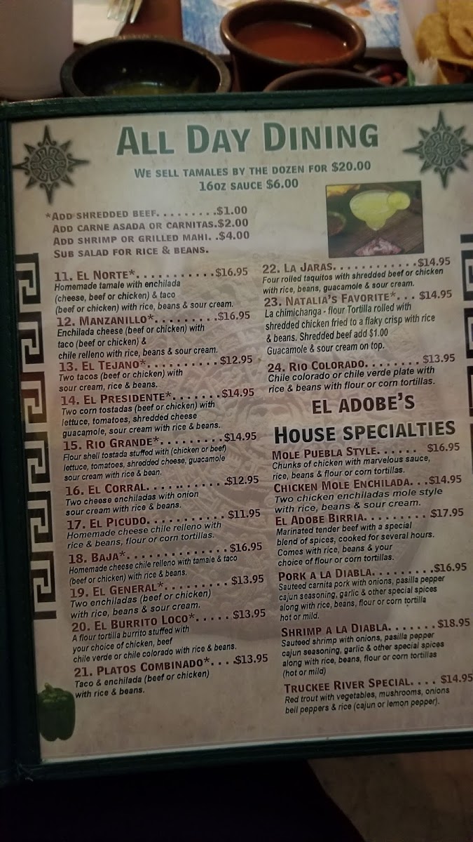 Tostada piled up with soft shell, filled with beans shredded chicken or ground beef, topped with lettuce, tomato, shredded cheese, sour cream & guacamole. Shredded beef add $2.00